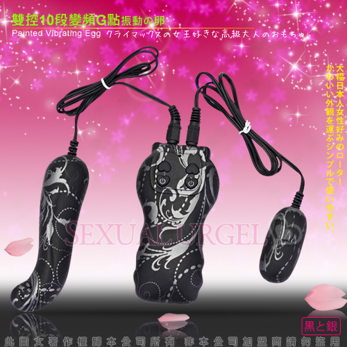 來看看這好東西花花世界-典雅花繪藝術 雙控10段變頻G點雙跳蛋(黑銀)