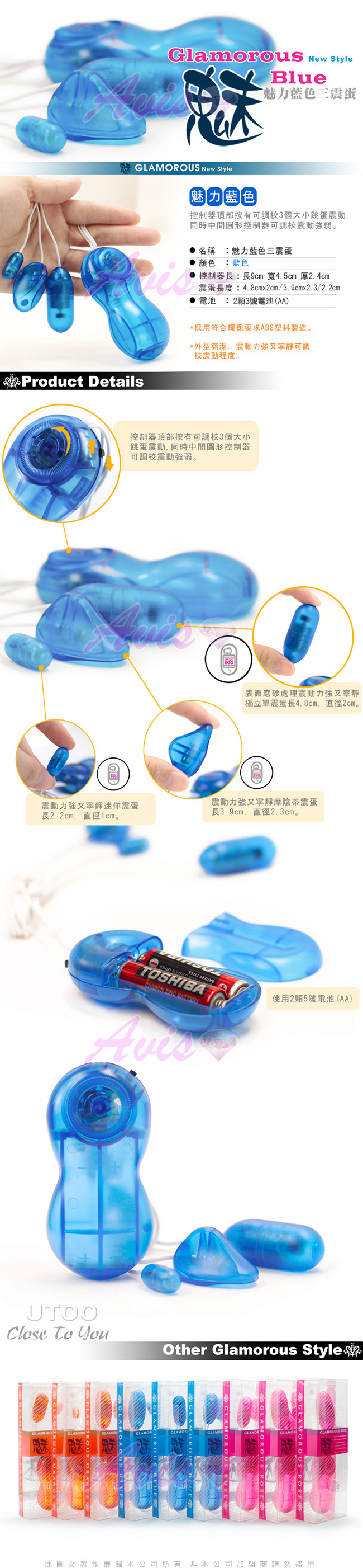 商品名稱:香港UTOO-魅力多震蛋(M+S+SP外陰震蛋)-藍