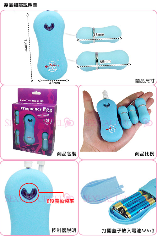 來看看這好東西Frequency Egg 8段變頻超靜音燈光雙跳蛋-藍