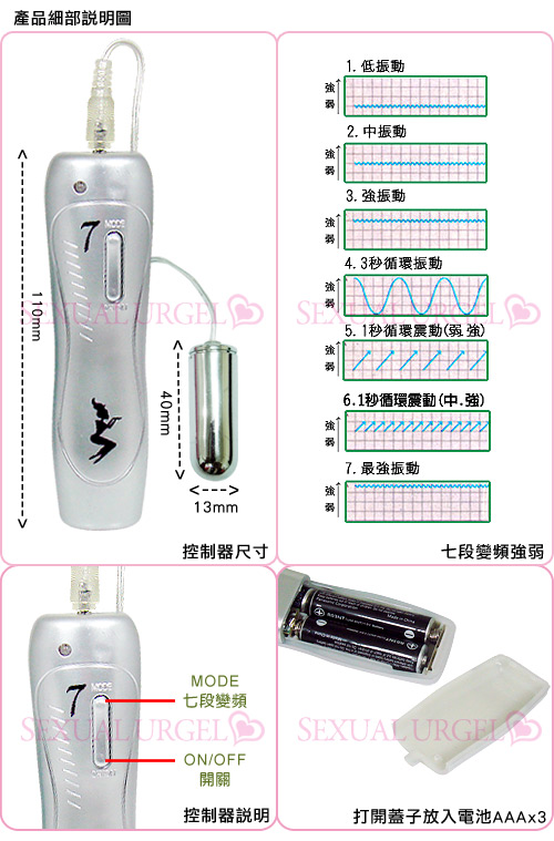 商品尺寸:控制器長約:110mm、震蛋長約:40mm