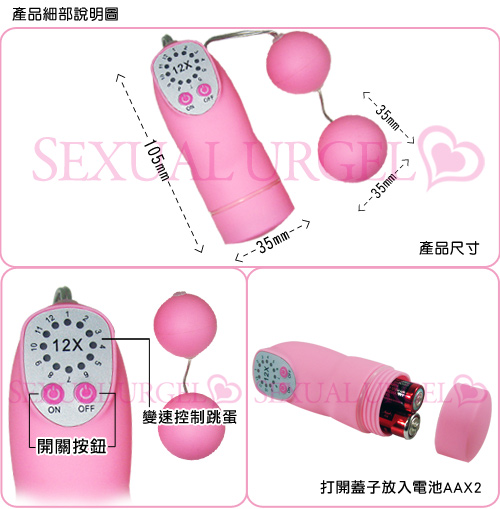 用於男女調情,有效刺激敏感部位,增進男女性愛情趣,延長做愛時間,雙跳蛋造型新潮,震動力強。12種不同頻率,讓你獲得更激情、更滿足的性高潮極品!!